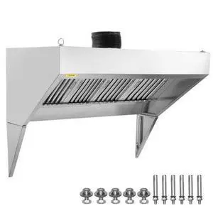 VEVOR Commercial Exhaust Hood, 8FT Food Truck Hood Exhaust, 201 Stainless Steel Concession Trailer Hood with 4 Detachable U-shaped Grid Oil Filter Mesh, Rust Resistant Vent Hood for Kitchen Restaurant