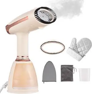 Cornesty Handheld Steamer for Clothes 1500W 20s Heatup Fabric Wrinkles Remover Portable Handheld Garment Steamer with Removable Water Tank and Fabric Brush Steamer for Garments(champagne)