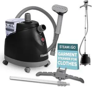 Steam & Go - The Rival Handheld Steamer - Upright Fabric Steamer for Clothes, Garments, Curtains, Bedding & Upholstery - Quick-Heating Foldable Steam Iron with Adjustable Pole Hanger & Detachable Tank
