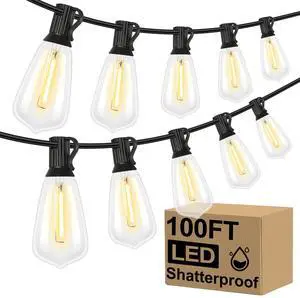LED Outdoor String Lights 100FT Patio Lights with 52 Shatterproof ST38 Vintage Edison Bulbs, Outside Hanging Light Waterproof for Porch, Deck, Garden, Backyard, Balcony, 2700K Dimmable