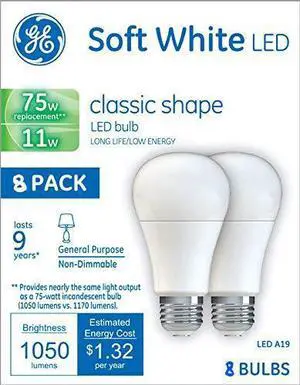 (8 bulbs) GE 21004 Soft White LED 75 watt equivalent A19 LED Light Bulb