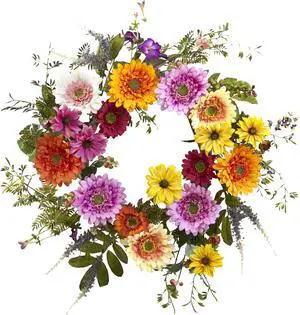 Nearly Natural 4936 African Sunflower Wreath 26-Inch Multicolored/Lavender