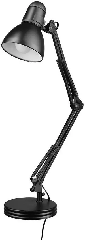 5698601 28" Heavy Base Top Moving Spring Balanced Swing Arm Desk Lamp, Black, On/Off Rotary Switch on Shade, Office Decor, Reading Light, Home Essentials, Room Lighting