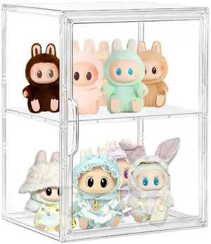 Acrylic Display Case, 2 Layer Clear Figure Display Cases for Collectibles with Magnetic Door, Acrylic Box with Movable Dividers 1 Pack