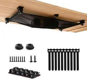 HX AURIZE Under Desk Cable Management Net Flexible Wire Organizer with Side Rods & Center Hooks Elastic Mesh Kit for Standing & Office Desks Adhesive Positioning and Screw Lock Black