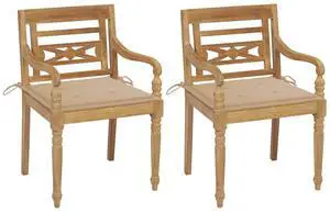 vidaXL 2x Solid Teak Wood Batavia Chairs with Beige Cushions Outdoor Seating