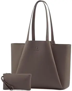 LOVEVOOK Laptop Tote for Women - 15.6 Inch Faux Leather Laptop Bag with Clutch, Large Capacity Office Purse Computer Briefcase for Casual Business Travel,Dark Khaki