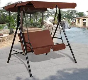 SlickBlue 2-Person Patio Chaise Lounge with Middle Panel-Brown