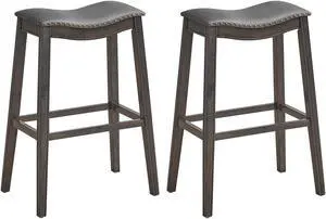 SlickBlue 29 Inch Set of 2 Backless Wood Nailhead Barstools with PVC Leather Seat