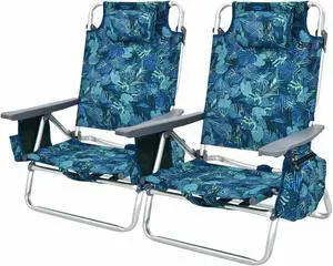 SlickBlue 2-Pack Folding Backpack Beach Chair 5-Position Outdoor Reclining Chairs with Pillow