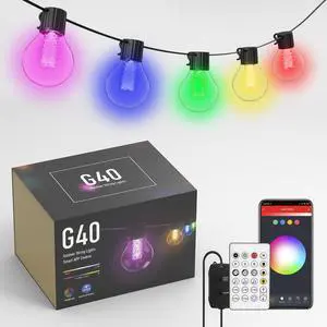 LED G40 Globe Bulb String Lights Outdoor RGB Music Sync  APP Remote Dimmable For Wedding Holiday House Backyard Garden Party 10 m
