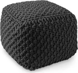 Casafield Square Pouf Ottoman, Black - 18.5" W x 18.5" D x 14.5" H Cotton Knit Foot Stool - Boho Floor Pouffe for Living Room, Bedroom, Home Office