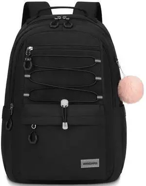 WINDARS School Backpack for Teens Girls, Aesthetic College Bookbag for Women Students Large Fashion 15.6 Inch Laptop Bag for Work Travel (Black)