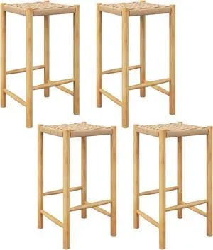 Giantex 26" Counter Height Wood Bar Stools Set of 4, Boho Rattan Barstools, Max Load 330 Lbs, Armless Saddle Kitchen Stools, Backless Wicker Bar Stools for Kitchen Counter Indoor Outdoor