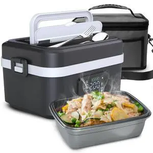 Heated Lunch Box for Adults 16000mAh - Electric Lunch Box with 6 Temp Levels, Rechargeable Portable Food Warmer Box, Leak-Proof 1L Hot Lunch Heater with Timer, Phone Charger, Insulated Bag