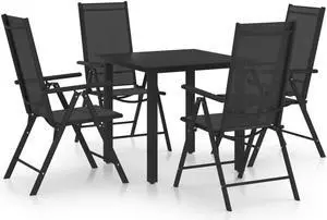 vidaXL Patio Dining Set 5 Piece Table and Chair Black Steel and Textilene