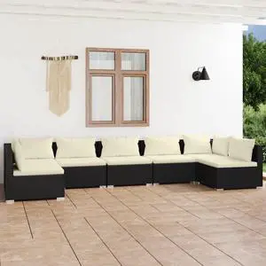 vidaXL Patio Lounge Set 7 Piece with Cushions Poly Rattan Black Garden Sofa