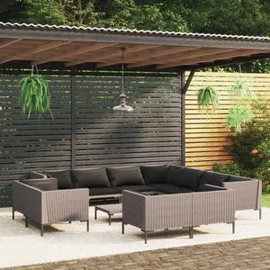vidaXL Patio Lounge Set Outdoor Sectional Sofa 12 Piece Poly Rattan Dark Gray
