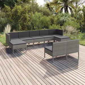 vidaXL Patio Lounge Set Outdoor Sectional Sofa 11 Piece Poly Rattan Dark Gray
