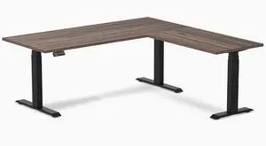 Desky Softwood L-Shape Sit Stand Desk - American Rustic Pine / 72 x 30 x 70 x 24 in / Space Gray