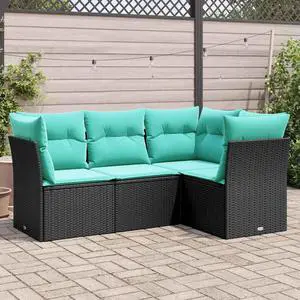 vidaXL Garden Sofa Set Black Poly Rattan Standard for a 4-piece sofa set