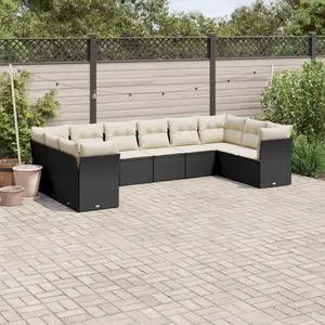 vidaXL Garden Sofa Set Black PE Rattan Large UV-Resistant Materials