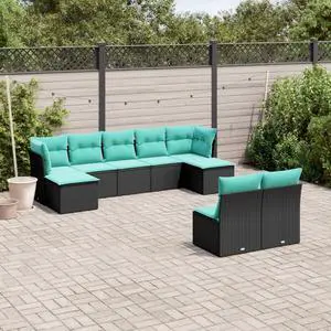 vidaXL Garden Sofa Set Black Poly Rattan 8 Piece Modular
