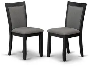 East West Furniture MZC6T50 Modern Dining Chairs - Dark Gotham Grey Linen Fabric Seat and High Chair Back - Wire Brushed Black Finish (SET OF 2)