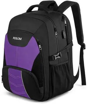 PUSLOM Extra Large Travel Laptop Backpack for Men 55L,Water Resistant 18.4 inch Big Business Laptop bags with USB Charging Port,TSA Friendly Anti Theft Computer Bag for Work College,Purple