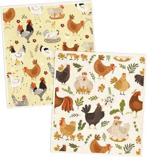 6Pcs Chicken Swedish Kitchen Dishcloth Farmhouse Cotton Kitchen Towel Absorbent Dish Towel for Home Party Housewarming Cleaning 7 x 8 Inch