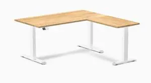 Desky Hardwood L-Shape Sit Stand Desk - White Oak / 60 x 30 x 62 x 20 in / White