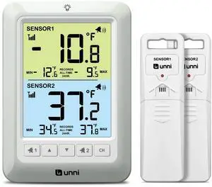 U UNNI Refrigerator Thermometer with Alarm, Digital Wireless Fridge and Freezer Thermometer, Max Min Temperature Records with Magnetic & Stand Options for Home Restaurant
