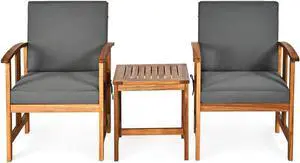 SlickBlue 3 Piece Patio Acacia Wood Bistro Set with Slatted Seat and Tabletop-Grey