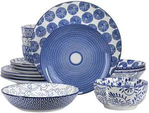 Elama Aurora 16 Piece Assorted Porcelain Double Bowl Dinnerware Set in Blue