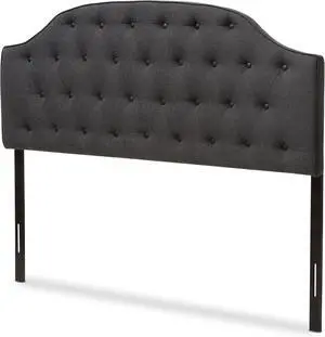 Baxton Studio Elaine Scalloped Buttoned Size Fabric Upholstered Headboard, Queen, Dark Grey