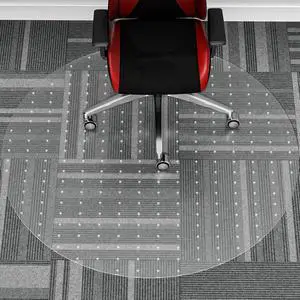 Features: Protects floors from chair caster scratches, Water-resistant to prevent spills, Anti-slip texture for safety, Flat design with anti-curling tech, Shaped to fit under desk, Compatible with up to 0.2" carpet with underlay, Durable PVC material, Semi-translucent design blends with office space, Conceals wires and prevents slips, Bobbled surface for stability