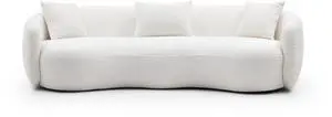 Mid Century Modern Curved Living Room Sofa, 4-Seat Boucle Fabric Couch for Bedroom, Office, Apartment, off white(beige and white)