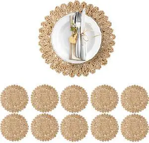 13.8" Corn Husk Woven Round Placemats Set of 10 - Wicker Boho Farmhouse Placemats - Rattan Table Mats Like Water Hyacinth for Dining Table, Wedding, Home