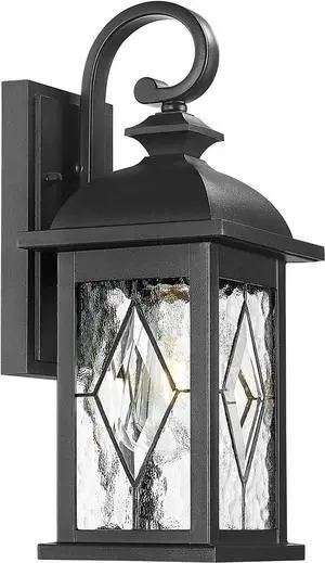 FEMILA Outdoor Wall Light Fixture,1-Light Exterior Waterproof Wall Sconce, Front Porch Lights, Matte Black Finish with Water Ripple Glass,E26 Socket, 4FD54B BK-SD