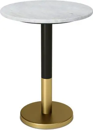SIMPLIHOME Evans 16-inch Wide End Table in White Genuine Marble and Black/Gold Iron, Modern Round Accent Table for Living Room, Bedroom, or Entryway