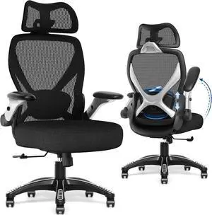 GABRYLLY Ergonomic Office Chair, Big and Tall Mesh Chair with Adjustable Lumbar Support, 5D Arms & Wide Seat, 135° Recline Home Desk Computer Chairs for Work Gaming, Heavy Duty,400LBS - Black