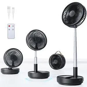 Portable Foldable Oscillating Fan with Remote Control, 7200mAh Rechargeable USB Standing Fan, 8'' Quiet Table Fan with 3 Speeds, Timing Function, Suitable for Home Office Camp Travel