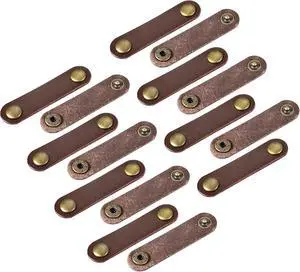 MECCANIXITY Pack of 15 Leather Cable Straps Cord Organizer 63x16mm Portable Cable Leather Clips Brown Earphone Cord Management for Cable, Wire