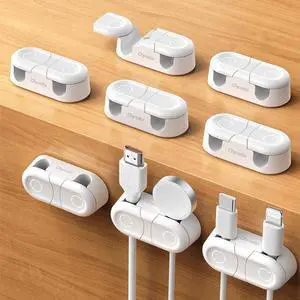 Magnetic Cable Clips - Chfeila 8Pack [Dual Slot] [360°Rotating & Twist-Lock] Cord Management, Adhesive Phone Charging Keeper, Wire Organizer Holder for Nightstand, Home Office Desk Accessories Decor