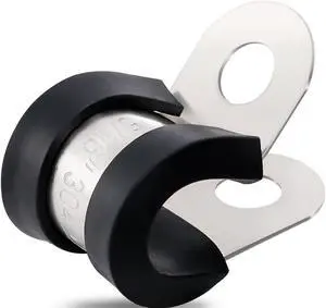 100PCS Cable Clamps 1/4 Inch 304 Stainless Steel Cable Clamps Rubber Coated Cushioned Insulated Cable Clamp,Automotive Wire Clamps,Pipe Clamps,Metal Clamp for Tube,Wire Cord Installation(6mm)