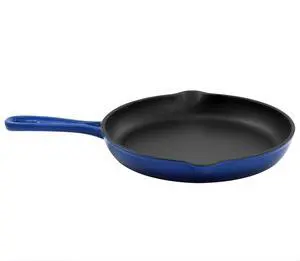 MegaChef Round 10.25 Inch Enameled Cast Iron Skillet in Gradient Dark Blue