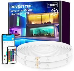 100ft Outdoor LED Strip Lights, Waterproof, IP67 Outdoor LED Lights with Remote, Bluetooth APP Control, Color Changing LED Rope Lights for Bedroom, Bathroom, Roof, Balcony, Pool