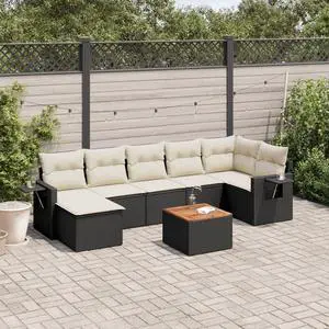 vidaXL Garden Sofa Set Set of 7 Black PE Rattan Large Adjustable Feet
