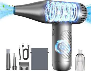 Electric Air Duster Kit, 3 Gears and Turbo Mode Dual Purpose Compressed Air Duster, Mini Vacuum Cleaner for Computer, Car, Keyboard and Home & Outdoor Dust Cleaning