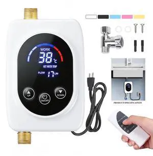 Tankless Water Heater Electric, 110V 3000W Instant Hot Water Heater with Touch Screen & Remote Control, Under Sink for Kitchen/RV/Small Apartment, US Plug Includes - White